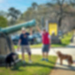 Guy, Brad, and the dogs posed by a Civil War canon, as Patrick searched the grounds for cannonballs. No luck. They’re long gone. Apparently they’re worth as much as a catalytic converter.